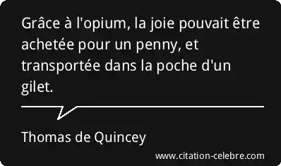 Grâce à l'opium, la joie pouvait être achetée pour un penny, et transportée dans la poche d'un gilet.