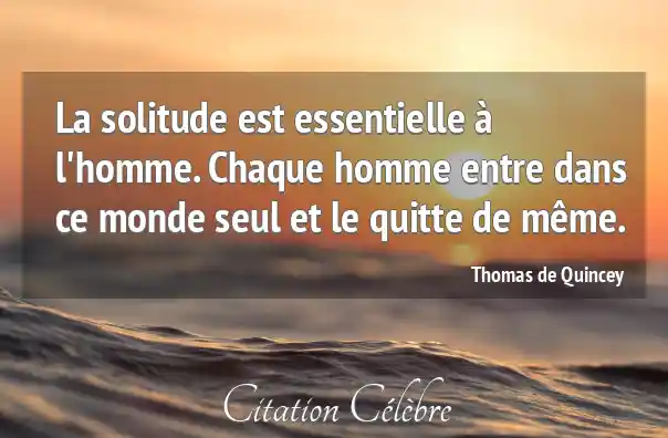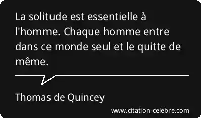 La solitude est essentielle à l'homme. Chaque homme entre dans ce monde seul et le quitte de même.
