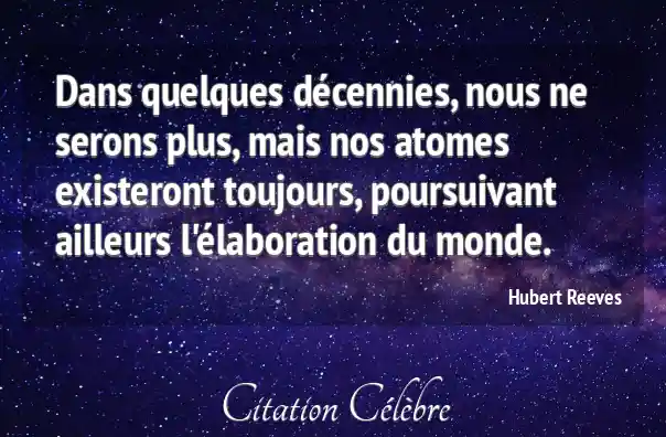 Dans quelques décennies, nous ne serons plus, mais nos atomes existeront toujours, poursuivant ailleurs l'élaboration du monde.