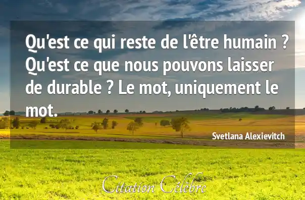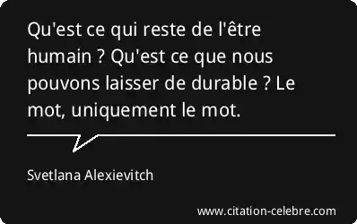 Qu'est ce qui reste de l'être humain ? Qu'est ce que nous pouvons laisser de durable ? Le mot, uniquement le mot.