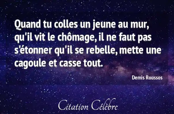 Quand tu colles un jeune au mur, qu'il vit le chômage, il ne faut pas s'étonner qu'il se rebelle, mette une cagoule et casse tout.