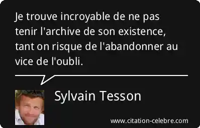Je trouve incroyable de ne pas tenir l'archive de son existence, tant on risque de l'abandonner au vice de l'oubli.
