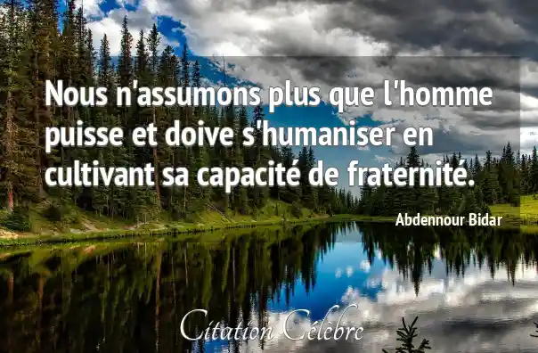 Nous n'assumons plus que l'homme puisse et doive s'humaniser en cultivant sa capacité de fraternité.