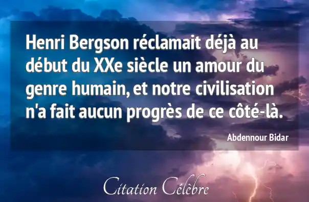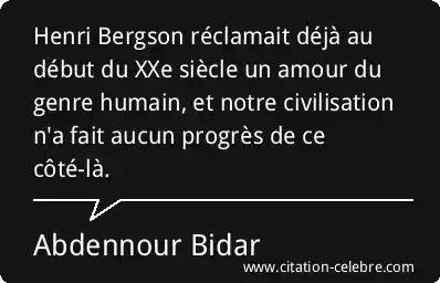 Henri Bergson réclamait déjà au début du XXe siècle un amour du genre humain, et notre civilisation n'a fait aucun progrès de ce côté-là.