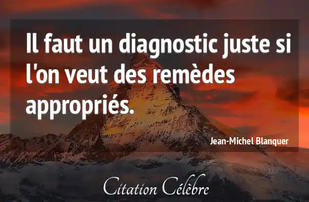 Il faut un diagnostic juste si l'on veut des remèdes appropriés.