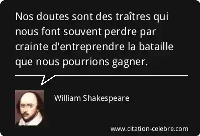 Nos doutes sont des traîtres qui nous font souvent perdre par crainte d'entreprendre la bataille que nous pourrions gagner.