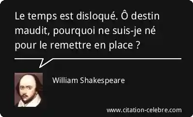 Le temps est disloqué. Ô destin maudit, pourquoi ne suis-je né pour le remettre en place ?