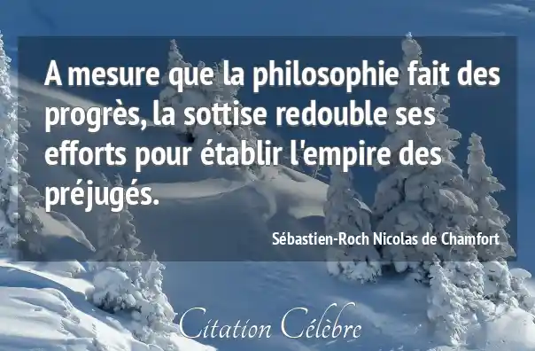 A mesure que la philosophie fait des progrès, la sottise redouble ses efforts pour établir l'empire des préjugés.