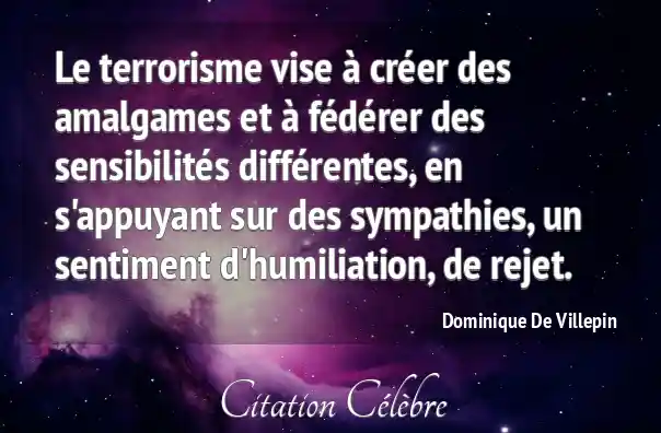 Le terrorisme vise à créer des amalgames et à fédérer des sensibilités différentes, en s'appuyant sur des sympathies, un sentiment d'humiliation, de rejet.