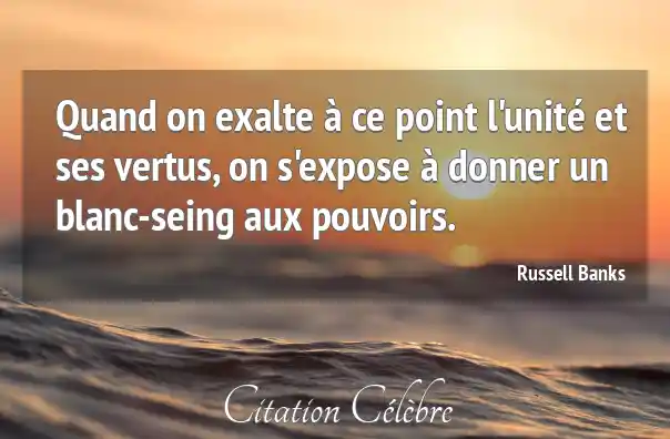 Citation Russell Banks donner : Quand on exalte à ce point l'unité et ses vertus,...