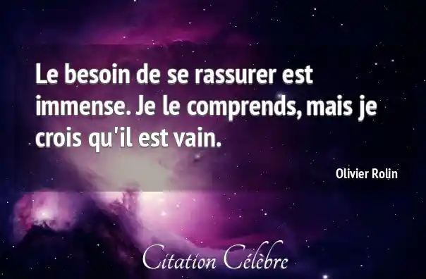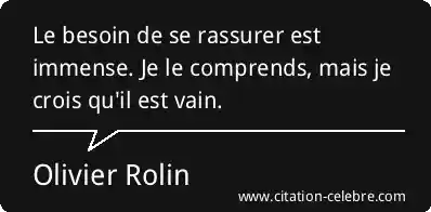 Le besoin de se rassurer est immense. Je le comprends, mais je crois qu'il est vain.