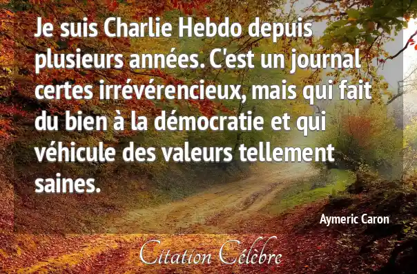 Je suis Charlie Hebdo depuis plusieurs années. C'est un journal certes irrévérencieux, mais qui fait du bien à la démocratie et qui véhicule des valeurs tellement saines.