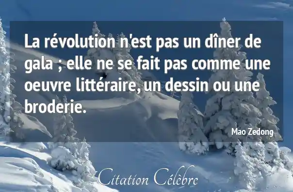 La révolution n'est pas un dîner de gala ; elle ne se fait pas comme une oeuvre littéraire, un dessin ou une broderie.