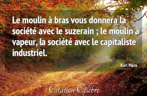 Le moulin à bras vous donnera la société avec le suzerain ; le moulin à vapeur, la société avec le capitaliste industriel.