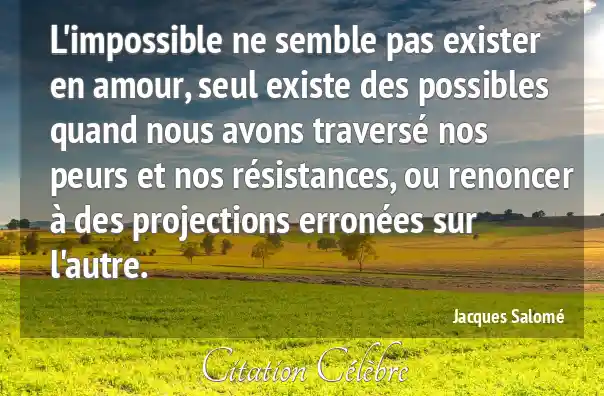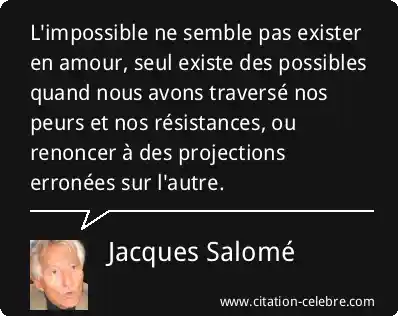 L'impossible ne semble pas exister en amour, seul existe des possibles quand nous avons traversé nos peurs et nos résistances, ou renoncer à des projections erronées sur l'autre.