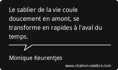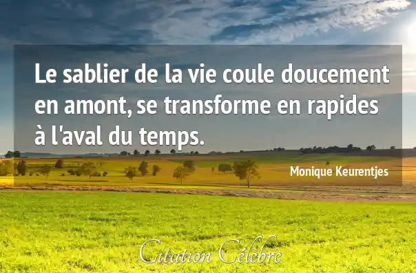 Le sablier de la vie coule doucement en amont, se transforme en rapides à l'aval du temps.
