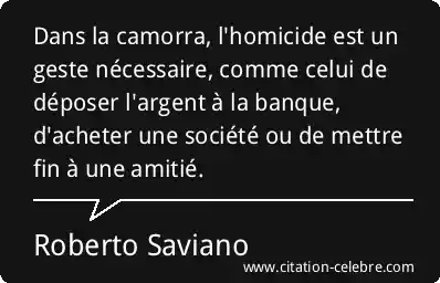 Dans la camorra, l'homicide est un geste nécessaire, comme celui de déposer l'argent à la banque, d'acheter une société ou de mettre fin à une amitié.
