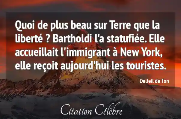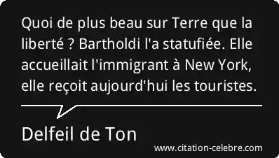 Quoi de plus beau sur Terre que la liberté ? Bartholdi l'a statufiée. Elle accueillait l'immigrant à New York, elle reçoit aujourd'hui les touristes.