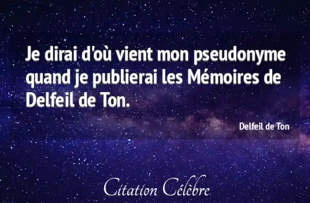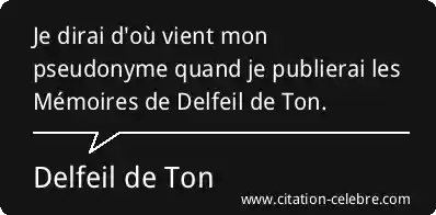 Je dirai d'où vient mon pseudonyme quand je publierai les Mémoires de Delfeil de Ton.