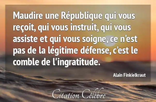 Maudire une République qui vous reçoit, qui vous instruit, qui vous assiste et qui vous soigne, ce n'est pas de la légitime défense, c'est le comble de l'ingratitude.