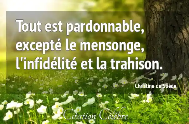 Tout est pardonnable, excepté le mensonge, l'infidélité et la trahison.