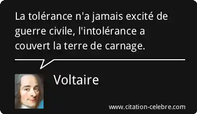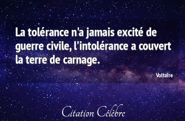 La tolérance n'a jamais excité de guerre civile, l'intolérance a couvert la terre de carnage.