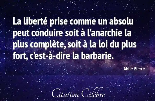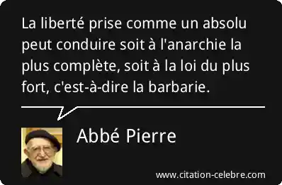 La liberté prise comme un absolu peut conduire soit à l'anarchie la plus complète, soit à la loi du plus fort, c'est-à-dire la barbarie.