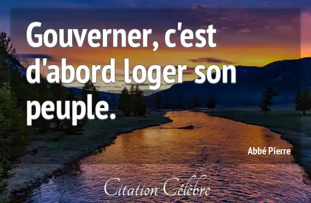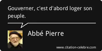 Citation Abbé Pierre peuple : Gouverner, c'est d'abord loger son peuple....