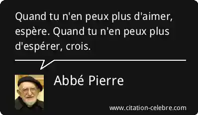 Quand tu n'en peux plus d'aimer, espère. Quand tu n'en peux plus d'espérer, crois.