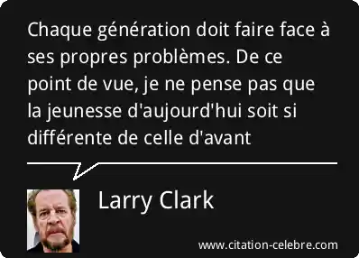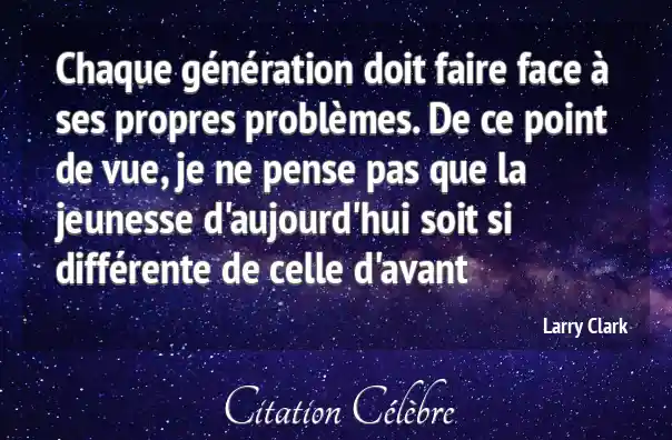 Chaque génération doit faire face à ses propres problèmes. De ce point de vue, je ne pense pas que la jeunesse d'aujourd'hui soit si différente de celle d'avant