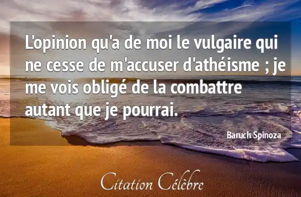 L'opinion qu'a de moi le vulgaire qui ne cesse de m'accuser d'athéisme ; je me vois obligé de la combattre autant que je pourrai.