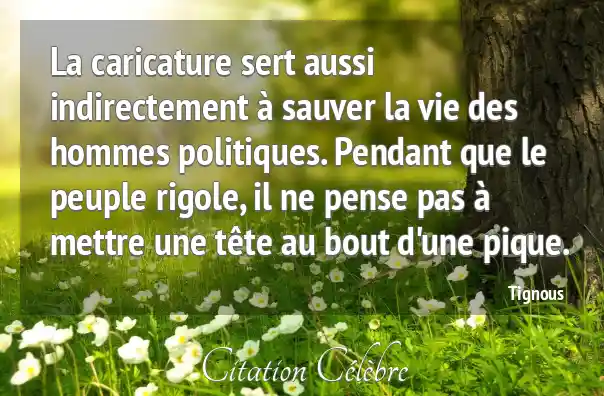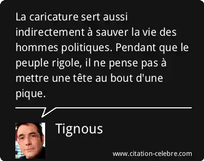 La caricature sert aussi indirectement à sauver la vie des hommes politiques. Pendant que le peuple rigole, il ne pense pas à mettre une tête au bout d'une pique.