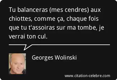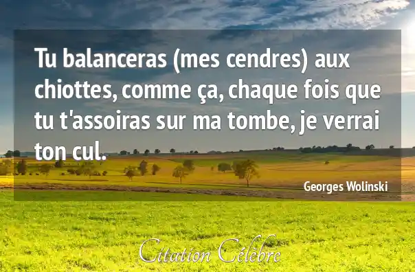 Tu balanceras (mes cendres) aux chiottes, comme ça, chaque fois que tu t'assoiras sur ma tombe, je verrai ton cul.