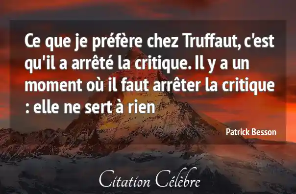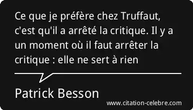 Ce que je préfère chez Truffaut, c'est qu'il a arrêté la critique. Il y a un moment où il faut arrêter la critique : elle ne sert à rien