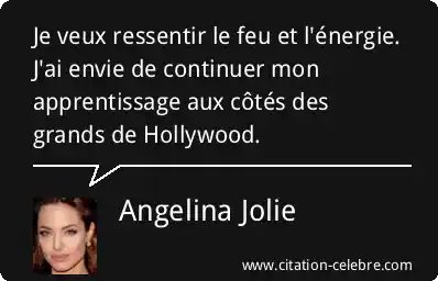 Je veux ressentir le feu et l'énergie. J'ai envie de continuer mon apprentissage aux côtés des grands de Hollywood.