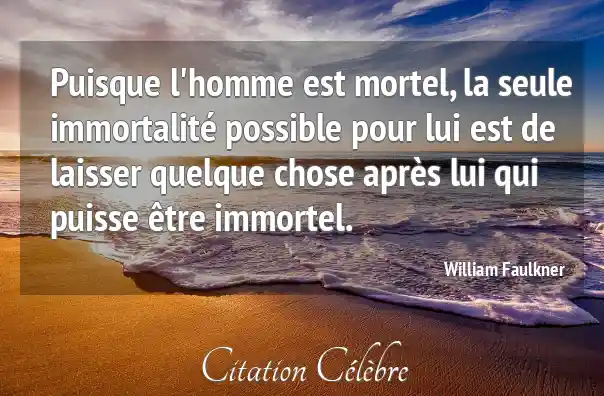 Puisque l'homme est mortel, la seule immortalité possible pour lui est de laisser quelque chose après lui qui puisse être immortel.