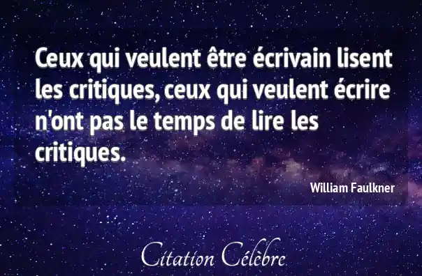 Ceux qui veulent être écrivain lisent les critiques, ceux qui veulent écrire n'ont pas le temps de lire les critiques.
