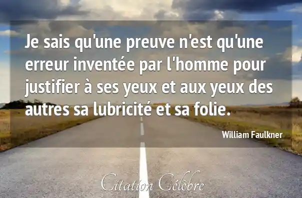 Je sais qu'une preuve n'est qu'une erreur inventée par l'homme pour justifier à ses yeux et aux yeux des autres sa lubricité et sa folie.
