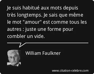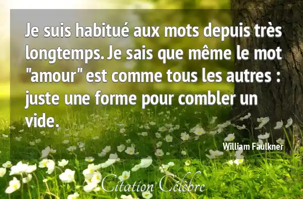 Je suis habitué aux mots depuis très longtemps. Je sais que même le mot "amour" est comme tous les autres : juste une forme pour combler un vide.