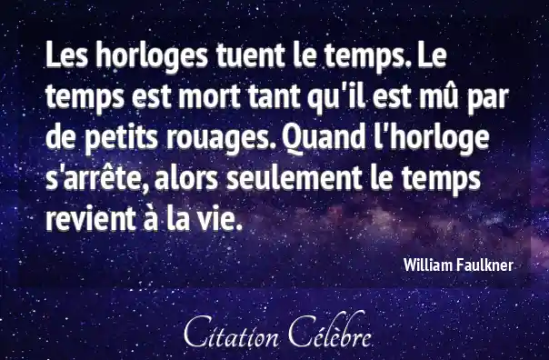 Les horloges tuent le temps. Le temps est mort tant qu'il est mû par de petits rouages. Quand l'horloge s'arrête, alors seulement le temps revient à la vie.