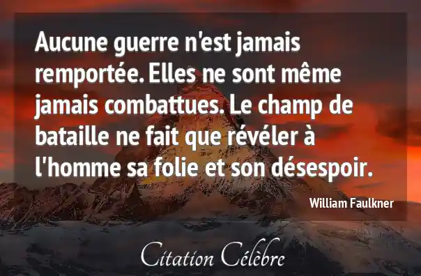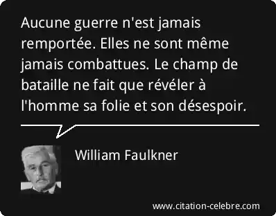 Aucune guerre n'est jamais remportée. Elles ne sont même jamais combattues. Le champ de bataille ne fait que révéler à l'homme sa folie et son désespoir.