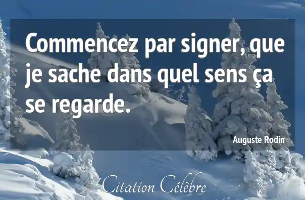 Citation Auguste Rodin sens : Commencez par signer, que je sache dans quel sens ça...