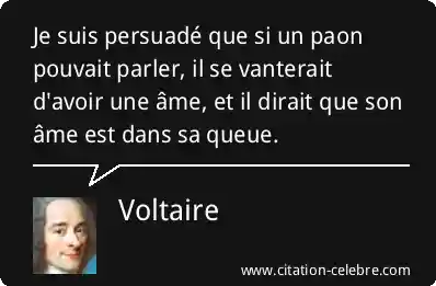 Je suis persuadé que si un paon pouvait parler, il se vanterait d'avoir une âme, et il dirait que son âme est dans sa queue.