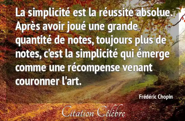 La simplicité est la réussite absolue. Après avoir joué une grande quantité de notes, toujours plus de notes, c'est la simplicité qui émerge comme une récompense venant couronner l'art.