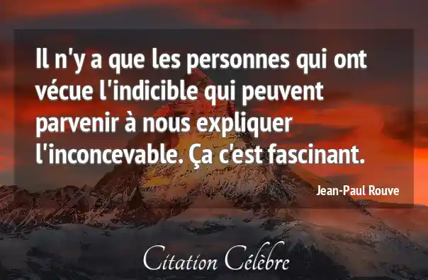 Il n'y a que les personnes qui ont vécue l'indicible qui peuvent parvenir à nous expliquer l'inconcevable. Ça c'est fascinant.