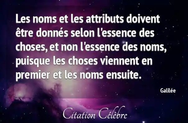 Les noms et les attributs doivent être donnés selon l'essence des choses, et non l'essence des noms, puisque les choses viennent en premier et les noms ensuite.
