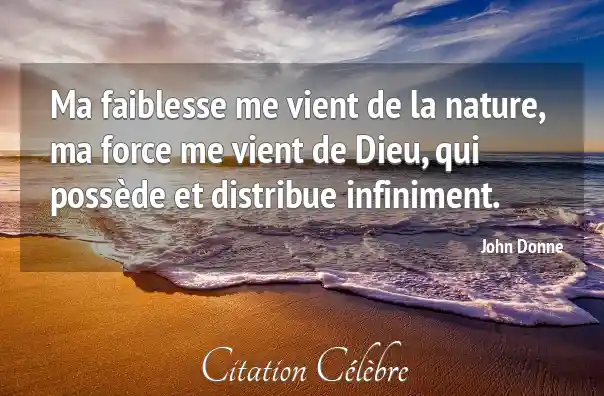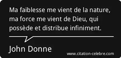Ma faiblesse me vient de la nature, ma force me vient de Dieu, qui possède et distribue infiniment.