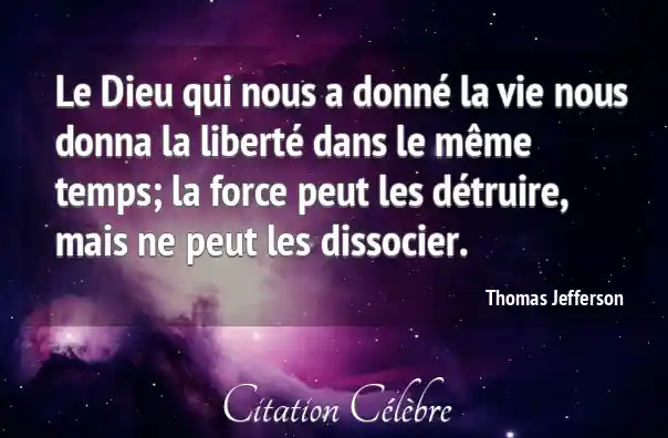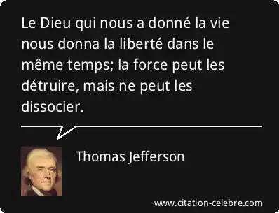Le Dieu qui nous a donné la vie nous donna la liberté dans le même temps; la force peut les détruire, mais ne peut les dissocier.