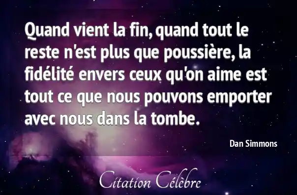 Quand vient la fin, quand tout le reste n'est plus que poussière, la fidélité envers ceux qu'on aime est tout ce que nous pouvons emporter avec nous dans la tombe.