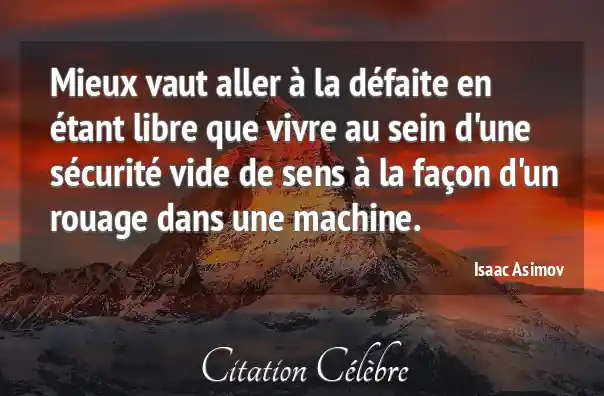 Mieux vaut aller à la défaite en étant libre que vivre au sein d'une sécurité vide de sens à la façon d'un rouage dans une machine.